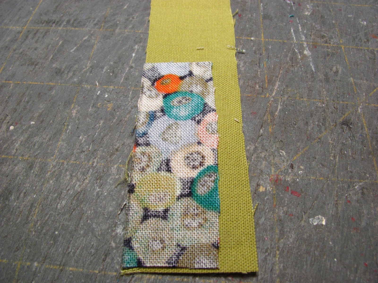 I've applied another line of glue to the print fabric and glued on the other solid strip of fabric.